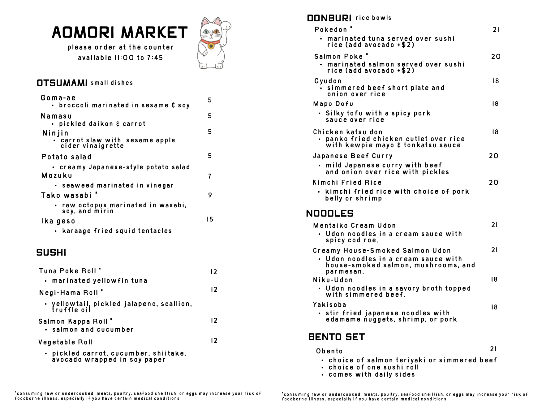 Aomori Market is a Japanese neighborhood market inspired by the simplicity and convenience of conbini culture. We offer freshly prepared meals, house-made pastries, carefully brewed coffee, and a thoughtfully curated selection of Japanese specialty goods — designed for everyday stops, quick meals, and a space to relax.